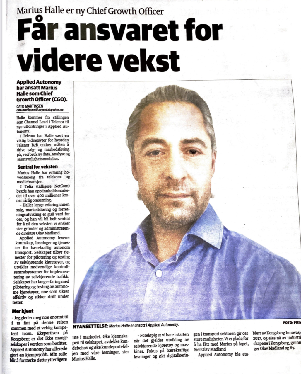 We are happy to announce that Marius Halle joined Applied Autonomy on 01/01/2021 as the new Chief Growth Officer (CGO).