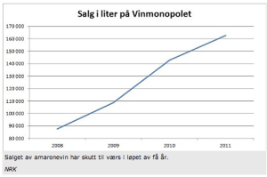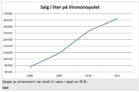 Salget av Amarone i Norge har gått rett til værs de siste årene. Ifjor ble det solgt Amarone for 54 millioner her til lands (ref. Nrk)